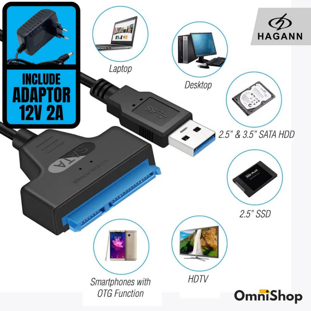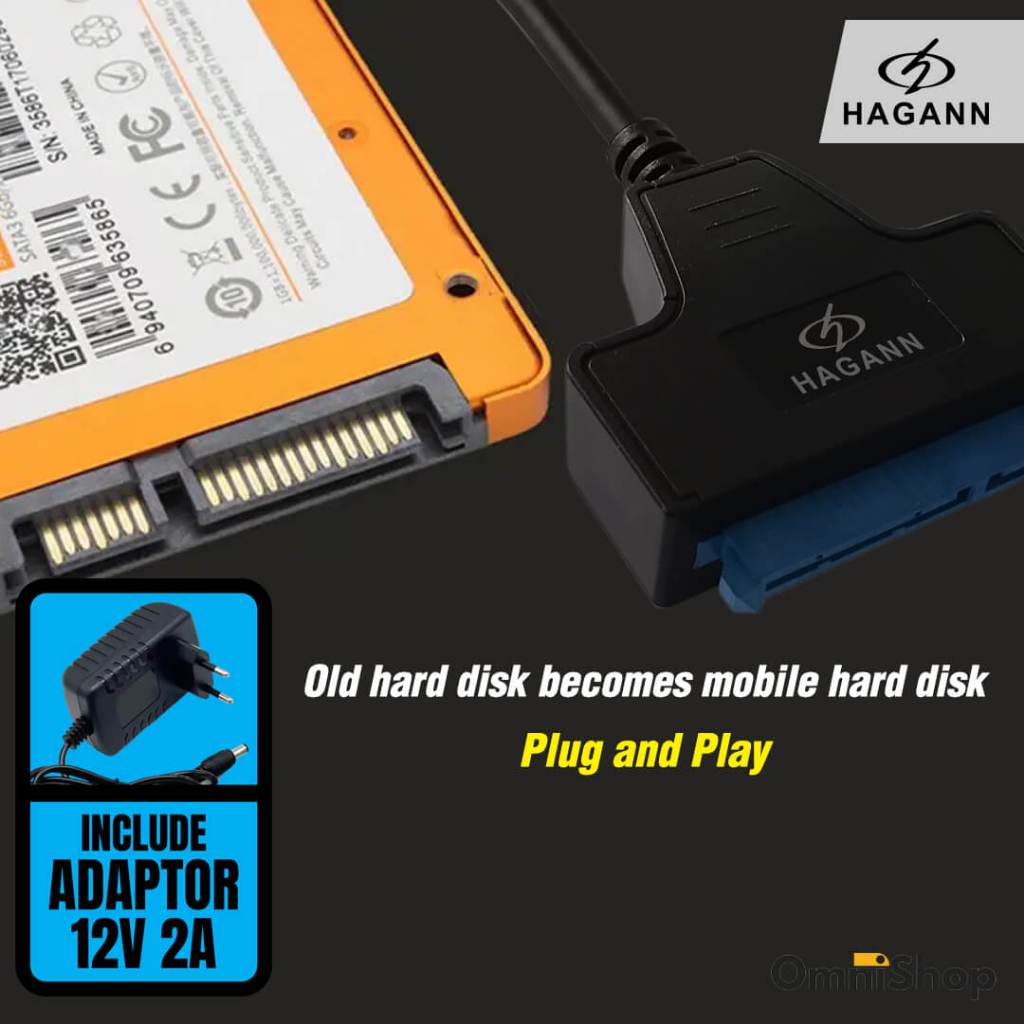 HAGANN CON-CC90 Kabel Converter SATA to USB 3.0 SSD 2.5" Hardisk 3.5" Adapter Harddisk HDD Eksternal Garansi 1 Tahu