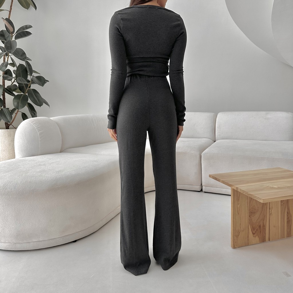 CORA PANTS - Celana Panjang Knit Wanita Long Cullote Pants Highwaist Loose Flare Cutbray Pants Basic Rib Knit Korean Long Trousers Murah Posha