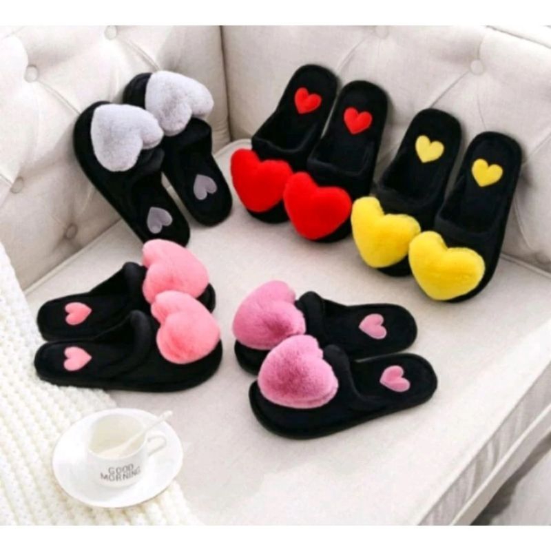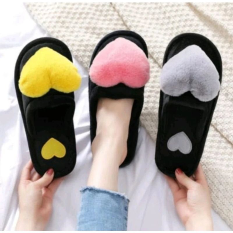 Sandal Rumah Bulu Korea Love Bustong Love Lembut Tidak Licin