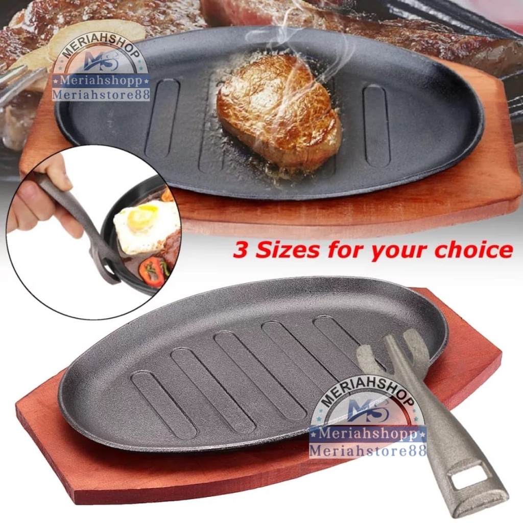 Hot Plate Oval Garis Hotplate model baru Grill Piring Steak Plate Cast Iron