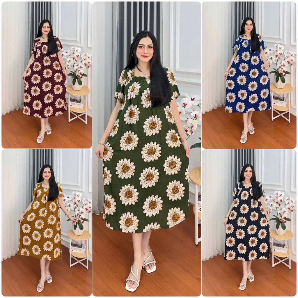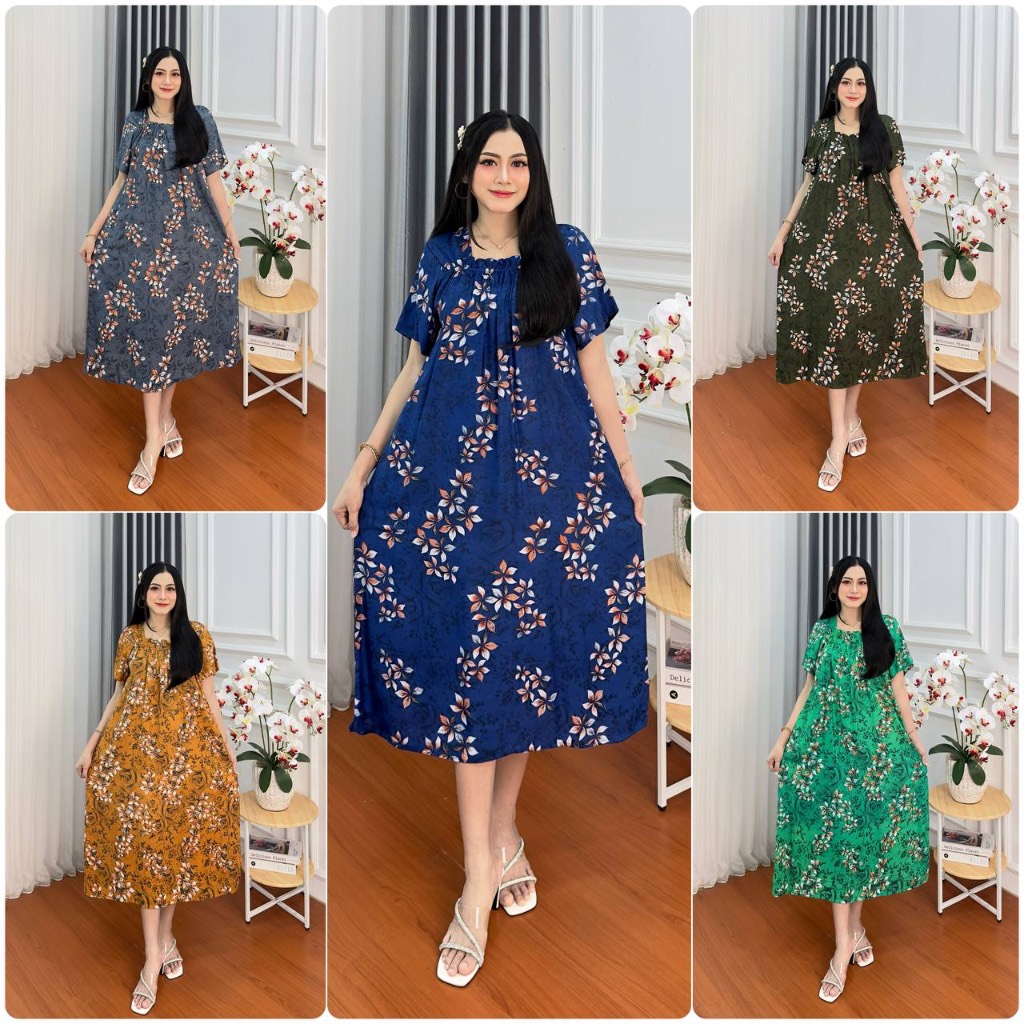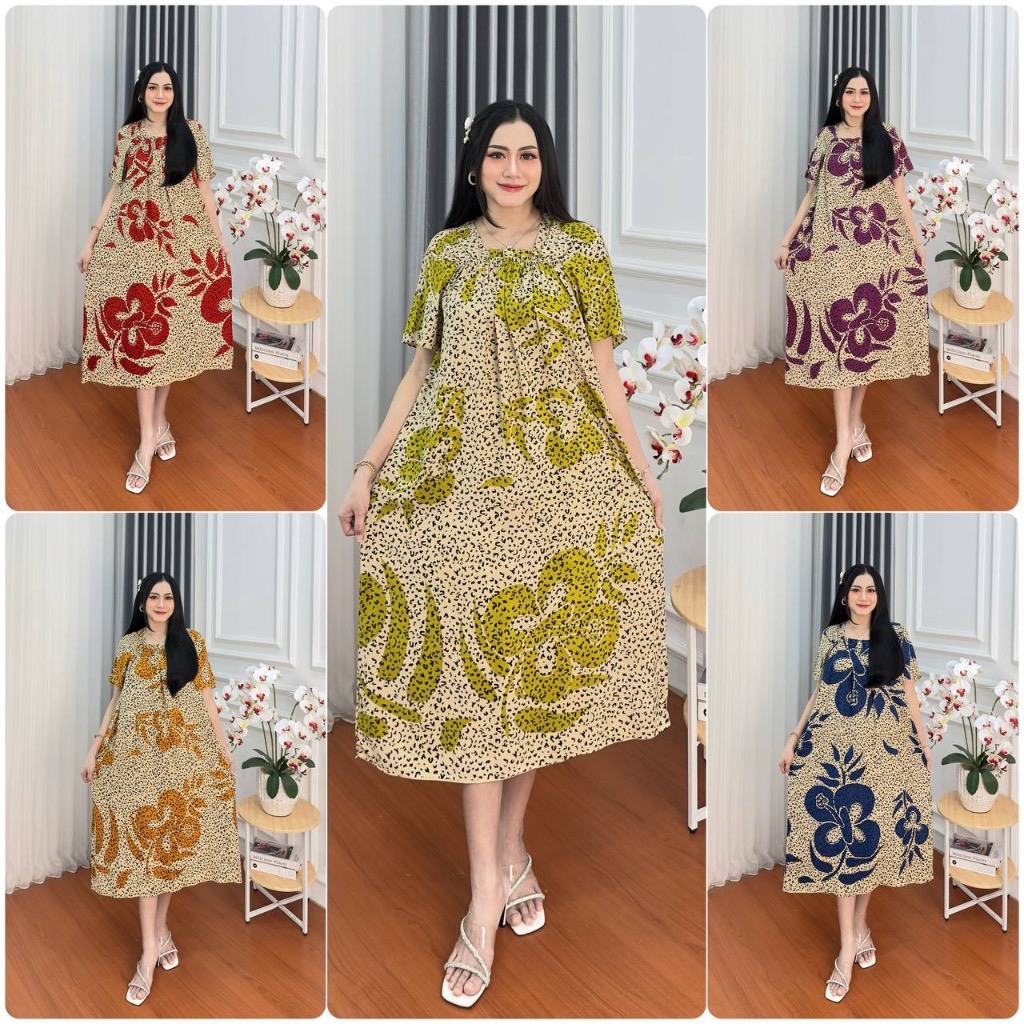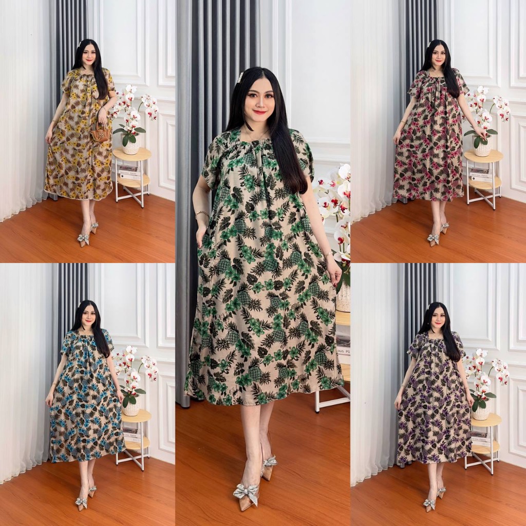Daster Super Jumbo Kekinian Terbaru Busui Bumil Kerut Dada Size LD 120 Cm Fuji Pendek Bahan Rayon Lengan Pendek Wanita Kekinian Bumil Karet Kerut Dada