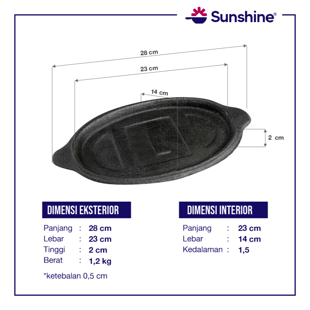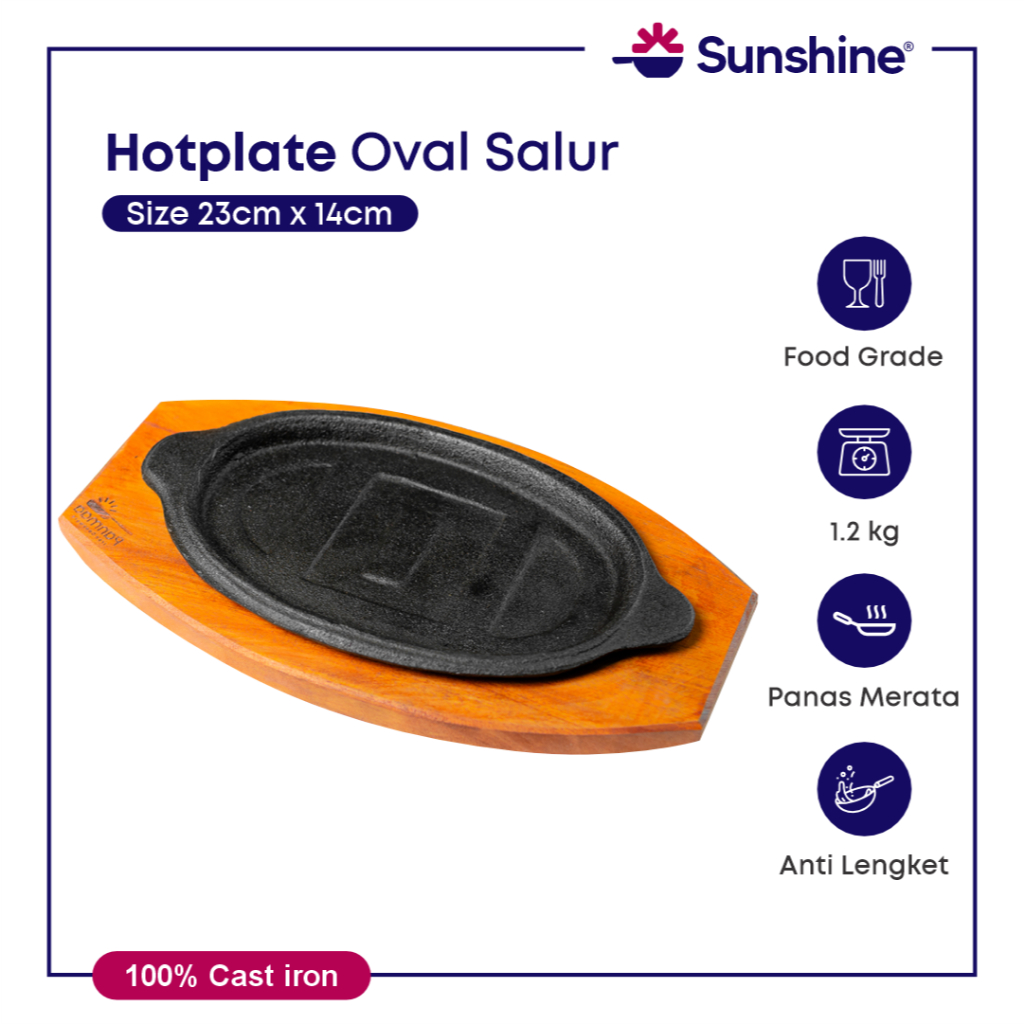 SUNSHINE Hot Plate Steak Piring Steak Oval Polos Telinga 21x13 cm