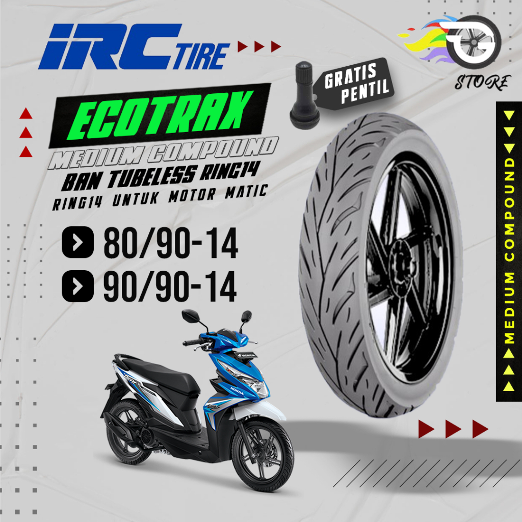 Ban Ring14 Irc Ecotrax Nr96 80/90&90/90-14 Tubeles Depan Belakang Beat,vario, Dll Terbaru