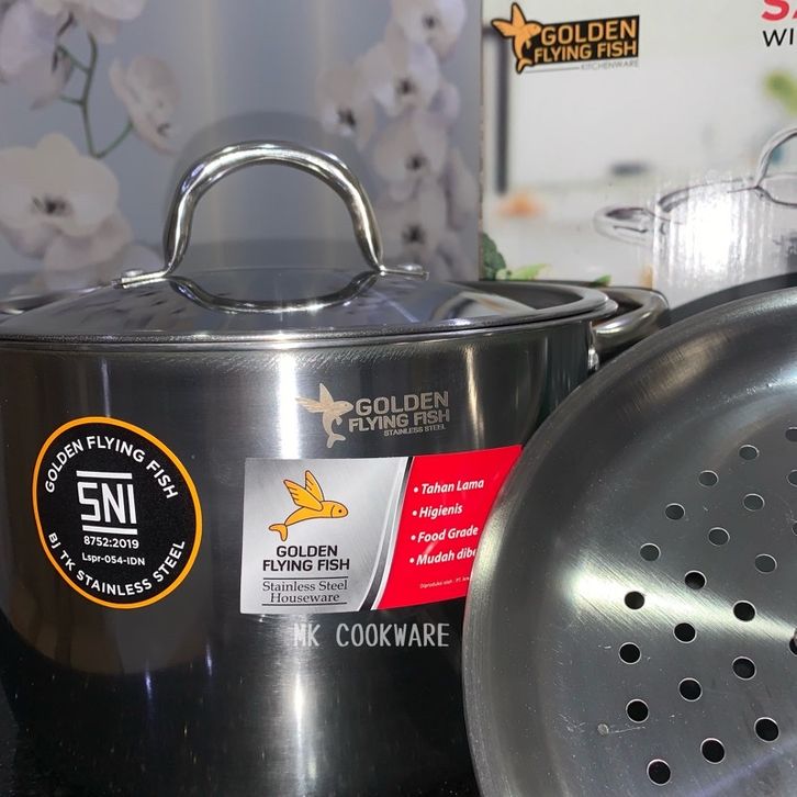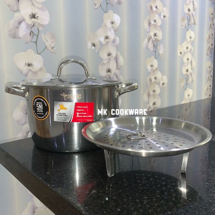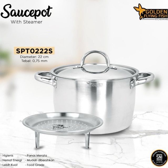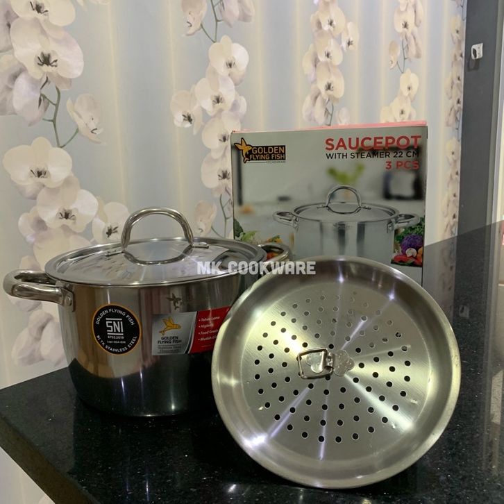 Panci Dandang Kukus Dandang Panci Kukusan 3 in 1 Golden Flying Fish 22cm Saucepot with Steamer Stainless Steel SPT0222S