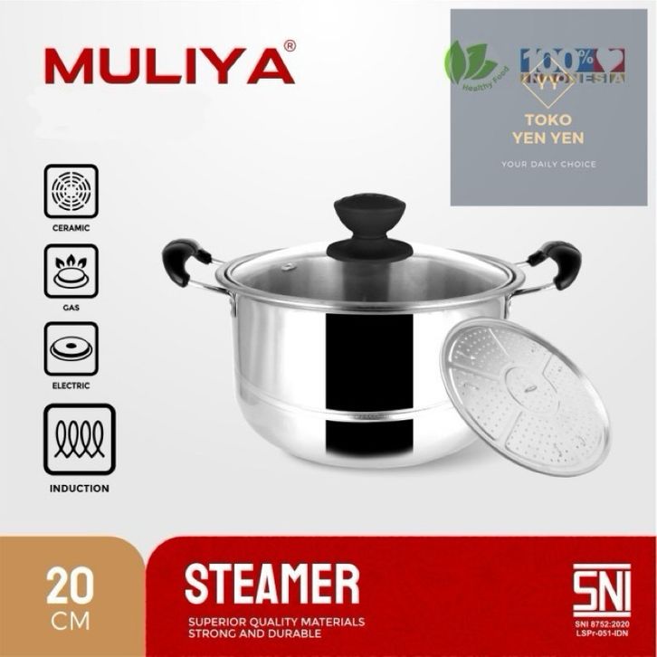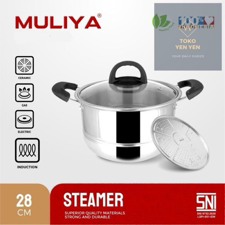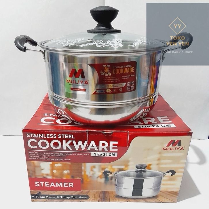 Panci Kukus Steamer Cookware Stainless Steel Muliya 20 22 24 26 28 cm Kukusan Stainless Steel Panci Rebus Panci Dandang