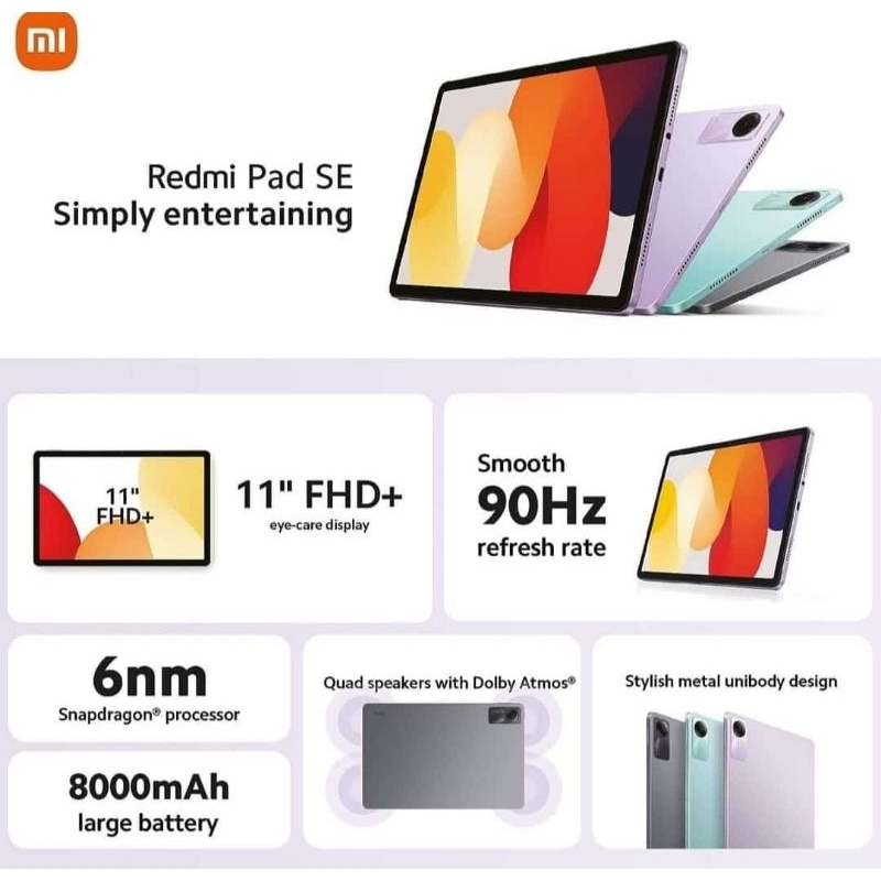 XIAOMI REDMI PAD SE WIFI 4/128 TABLET XIAOMI MI PAD SE 11 INCH BATERAI 8.000MAH SNAPDRAGON 680 TABLET REDMI PAD SE 8.7 I