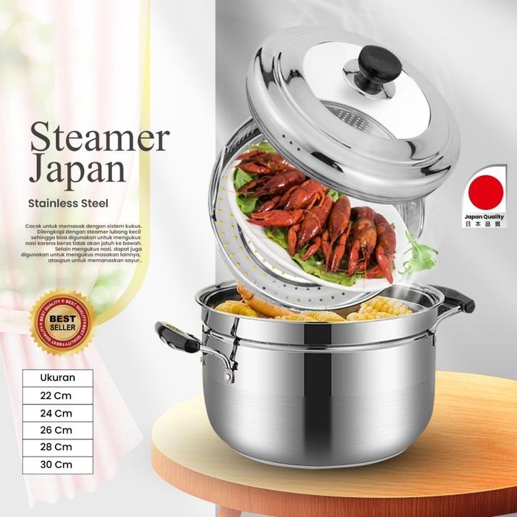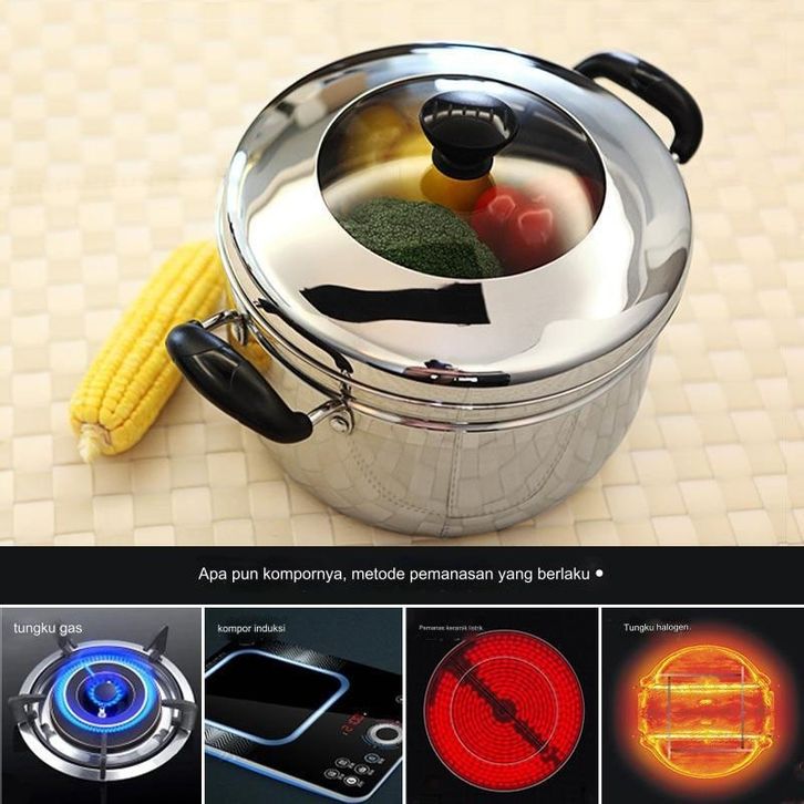Panci Kukus Panci Dandang Serbaguna Panci Steamer Kukus Nasi Sup Makanan Model Jepang Tinggi Multifungsi Stainles Steel