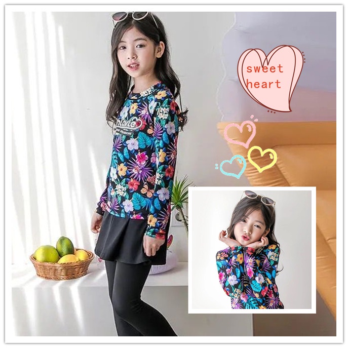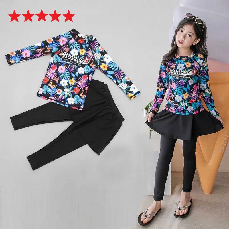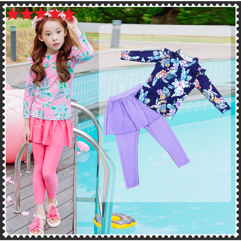 10-38KG Baju Renang Swim DRESS Anak Perempuan Panjang Gaya Tangan Anak Pakaian Celana Renang MUSLIMAH WEAR