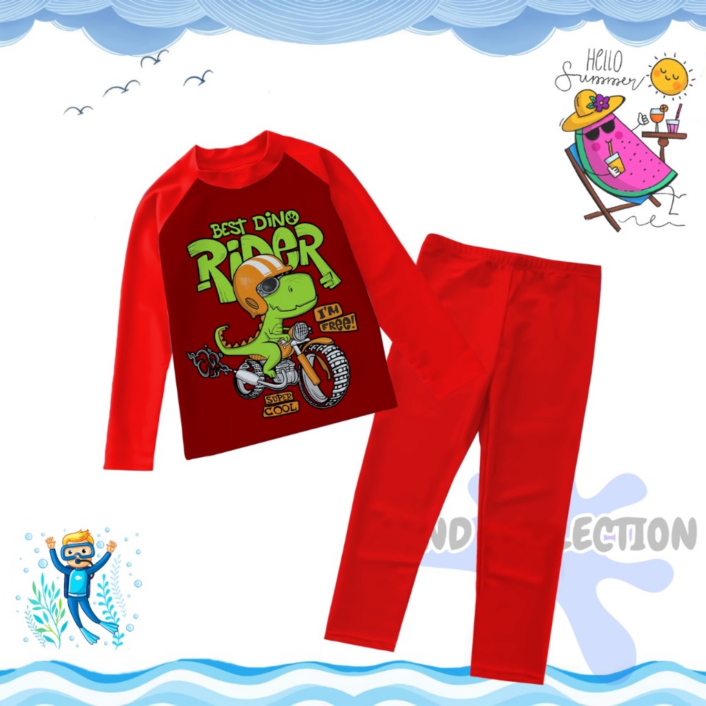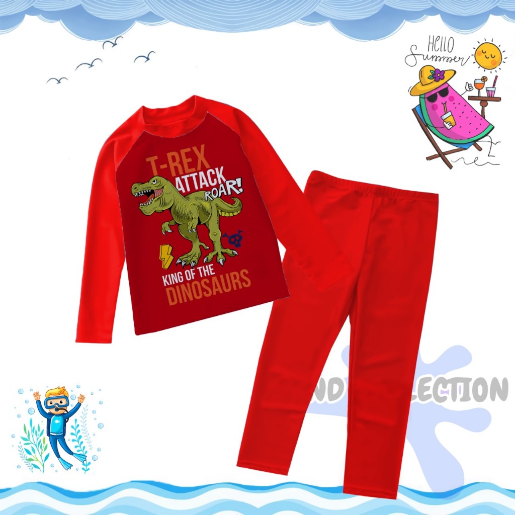 Baju Renang Anak Perempuan/Baju Renang Lengan Panjang/Baju Renang Karakter Kombi Merah Part 2 1-9TH