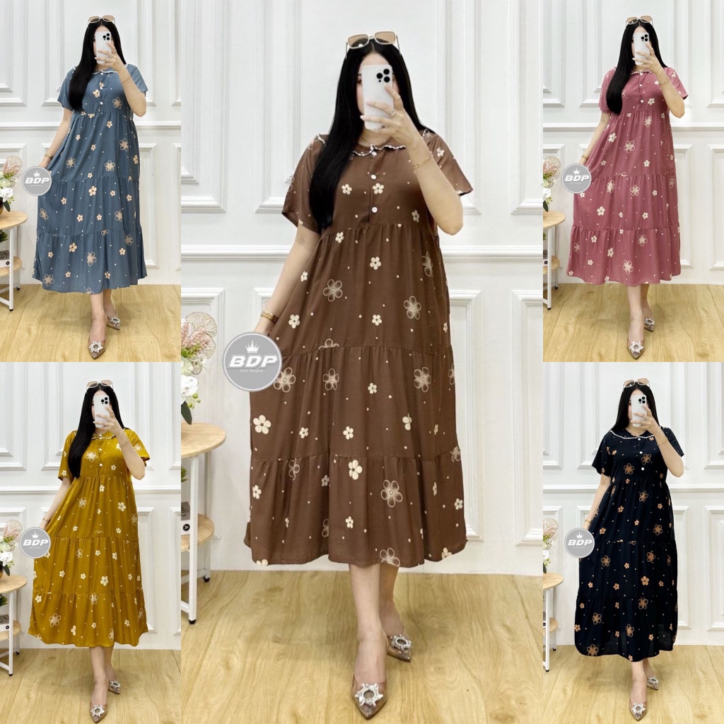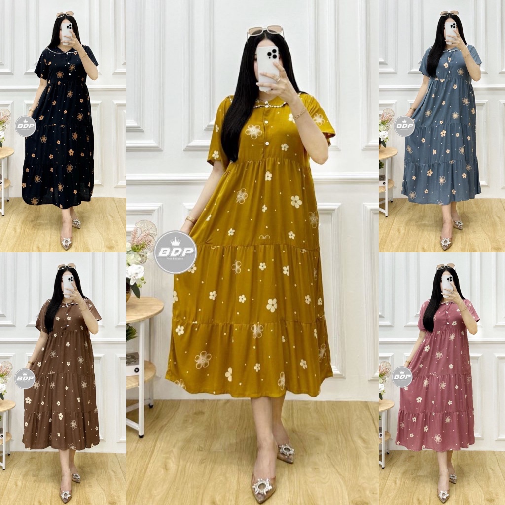 [Mall] Daster Dress Maura Batik Cap Rayon Grade A Busui Kancing Depan | Daster Wanita Lengan Panjang | Daster Kekinian