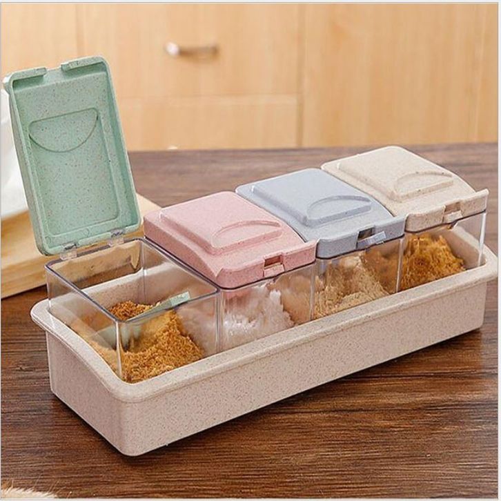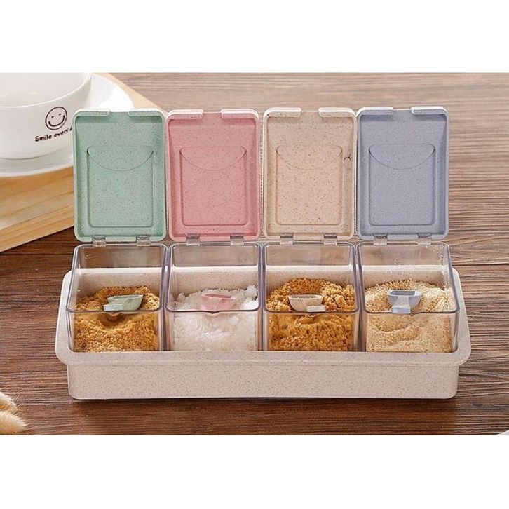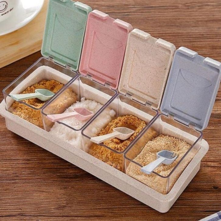 Tempat Bumbu 4in1 Bahan Plastik Model Aesthetik Set 4 Tempat Bumbu Dapur Serbaguna Termasuk Sendok