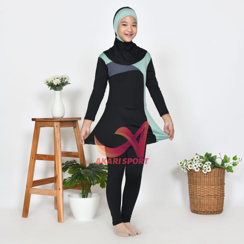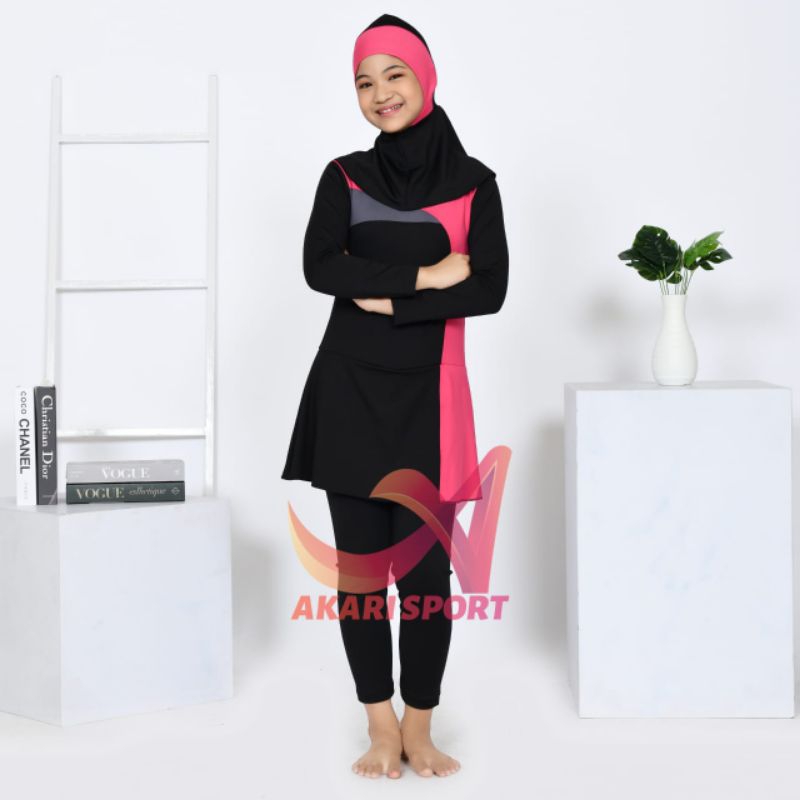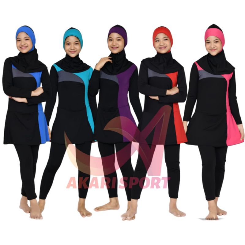 BAJU RENANG MUSLIM ANAK TK SD HIJAB PEREMPUAN SPANDEK 3-12TAHUN