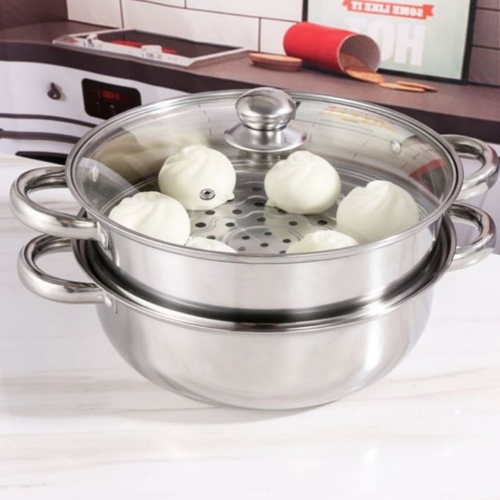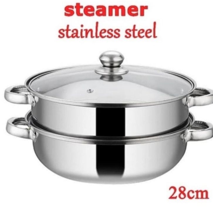 Panci Dandang Kukus Panci Kukus Panci Dandang Kukus 2 Susun Steamer Kukus Ikan Siomay Dimsum 2 Susun Stainless 28 CM