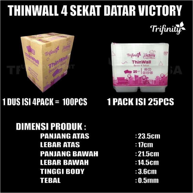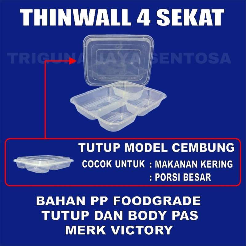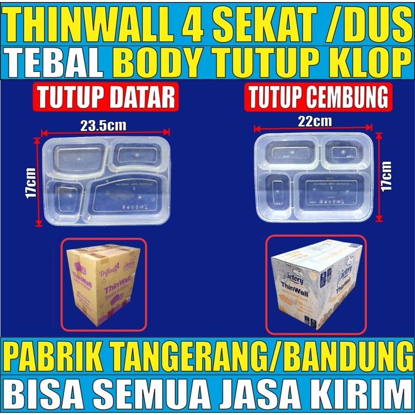 (FLASH SALE)Thinwall 4Sekat Tebal Tutup Datar Atau 4 Sekat Tutup Cembung Per Dus Kotak Makan Bento Plastik Jskrm