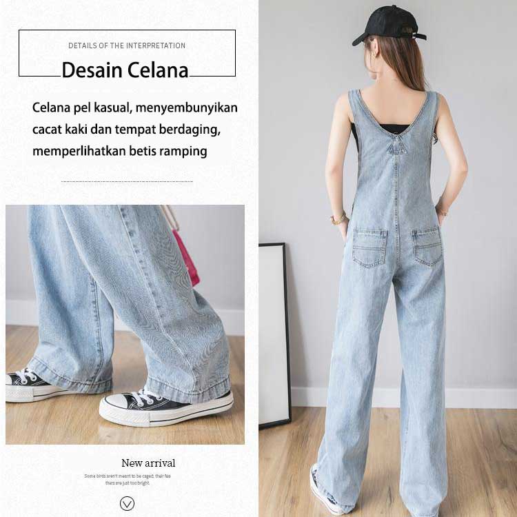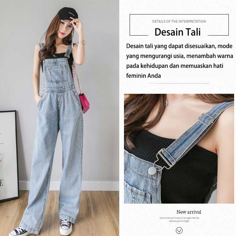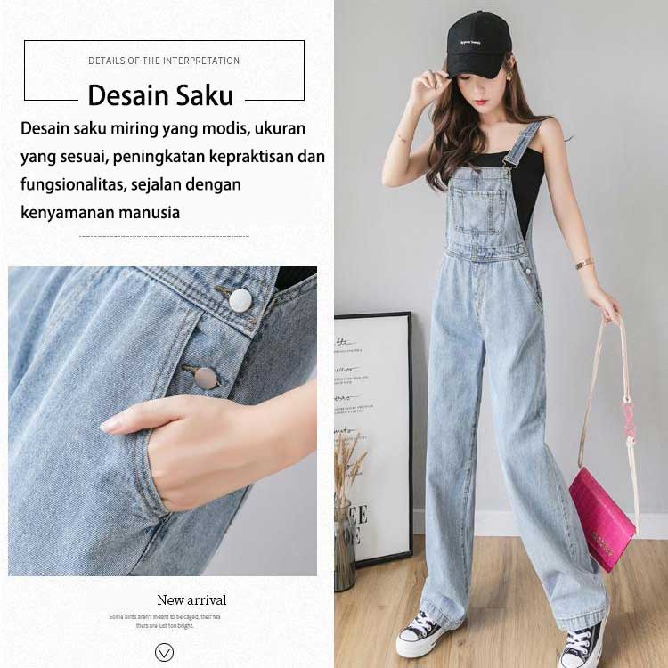 Overall Kaki Lebar Longgar Pinggang Tinggi Gaya Korea Wanita