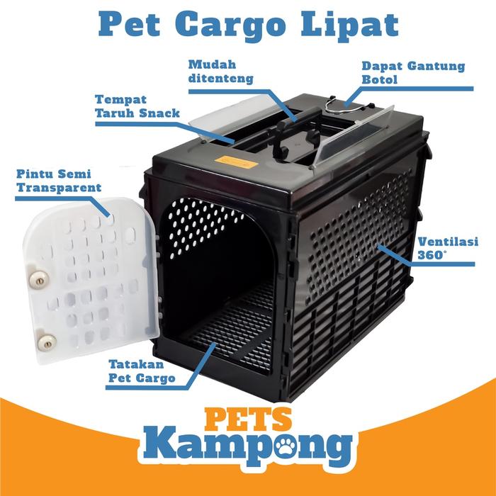 Murah Kandang Kucing Pet cargo Lipat Opo Cat ukuran 38x23x30 M - Hitam Promo