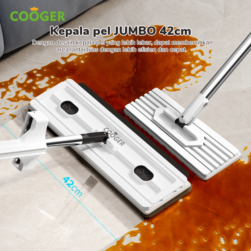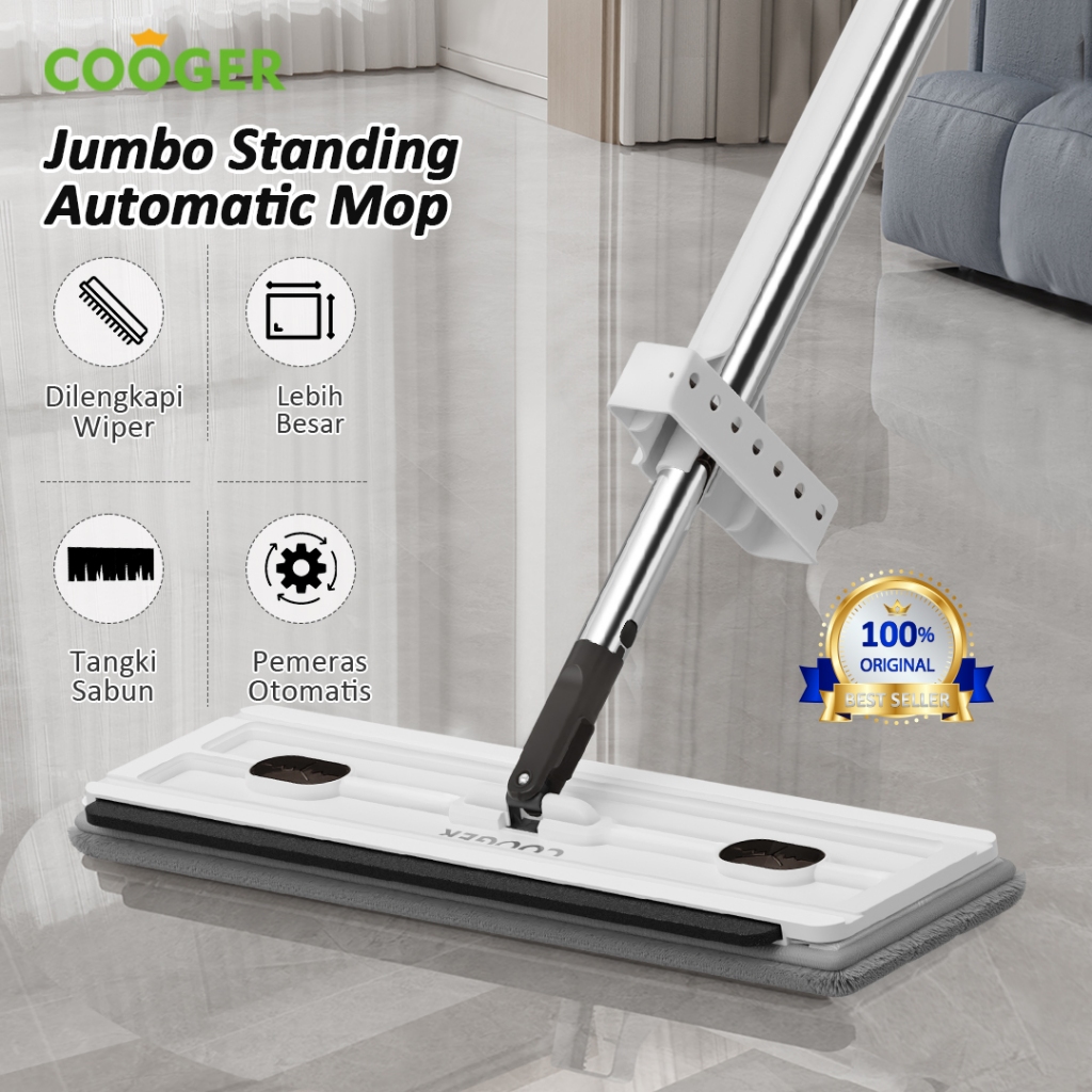 COOGER Alat Pel Lantai Jumbo Dengan Wiper Dan Tempat Sabun Pel Lantai Otomatis Standing Jumbo Mop Wiper Automatic Mop