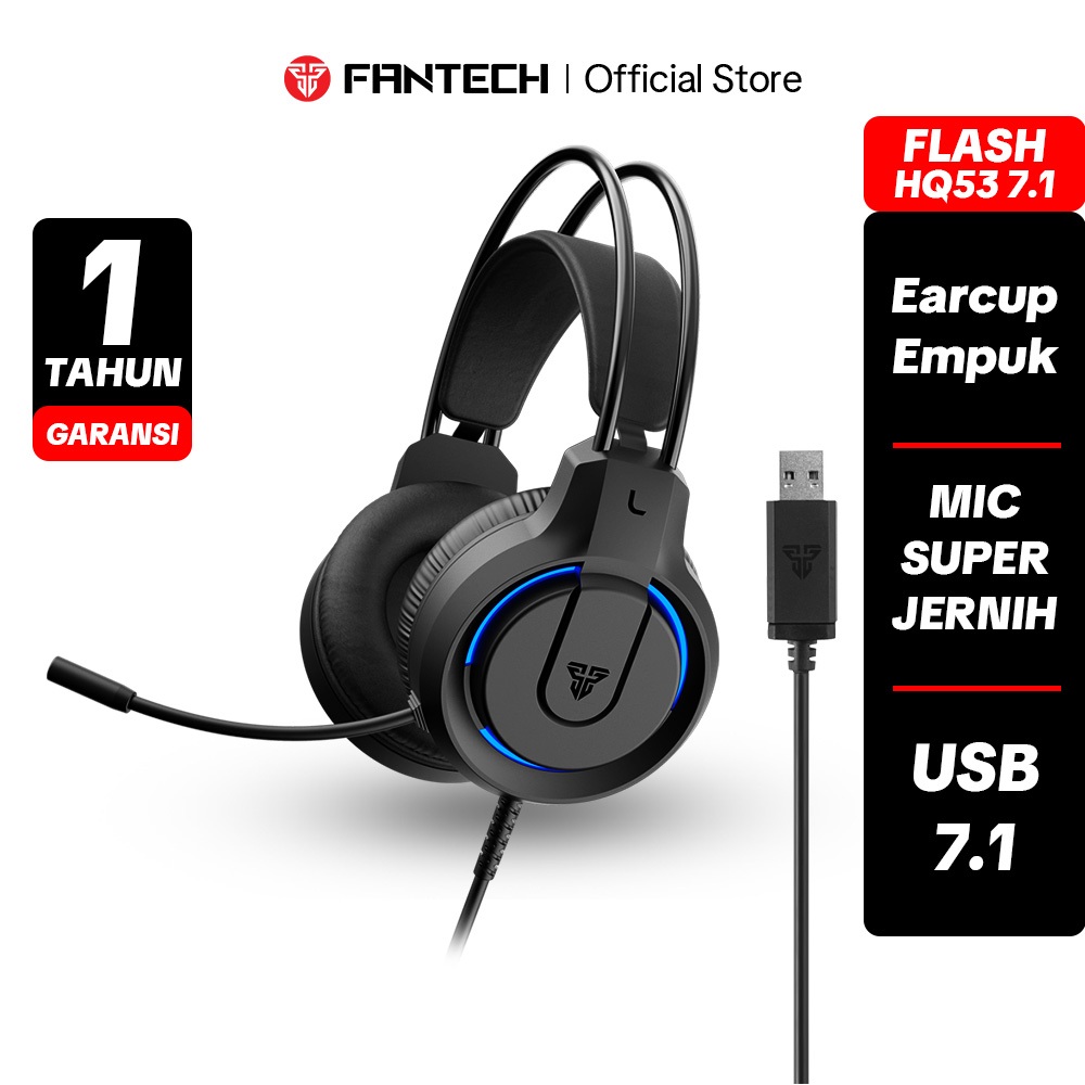 FANTECH FLASH HQ53 7.1 VIRTUAL SURROUND SOUND HEADSET GAMING PC KABEL TERLARIS SUPER BASS HEADPHONE USB GRATIS ONGKIR