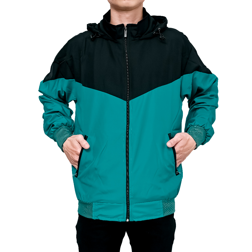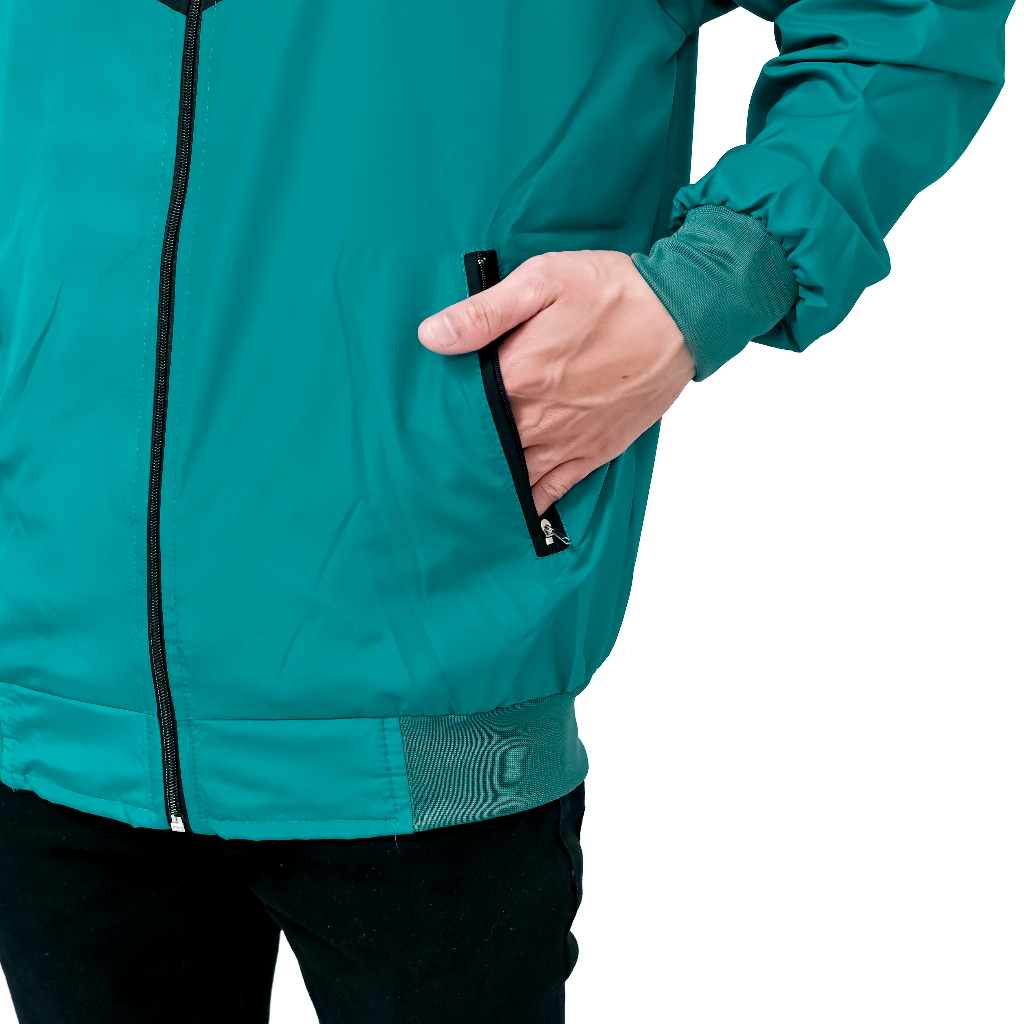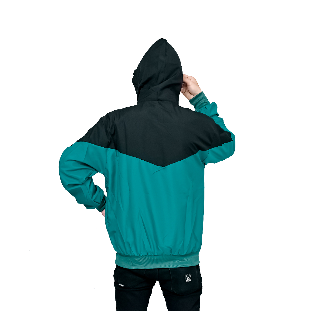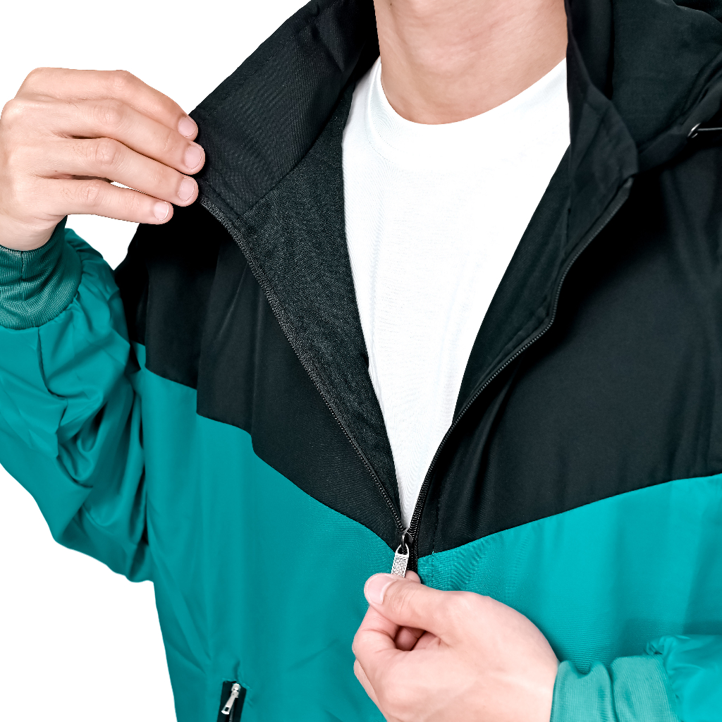 HANANIA - Jaket Olahraga Pria/Wanita | Jacket Parasut Kombinasi | Jaket Lari Sauna Hitam Toska