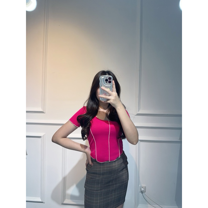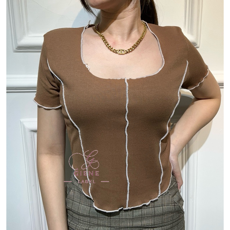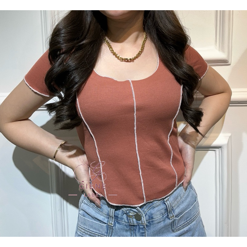 Gio Short List Crop Top | Atasan Wanita Crop Bahan Rib Knit List Melar