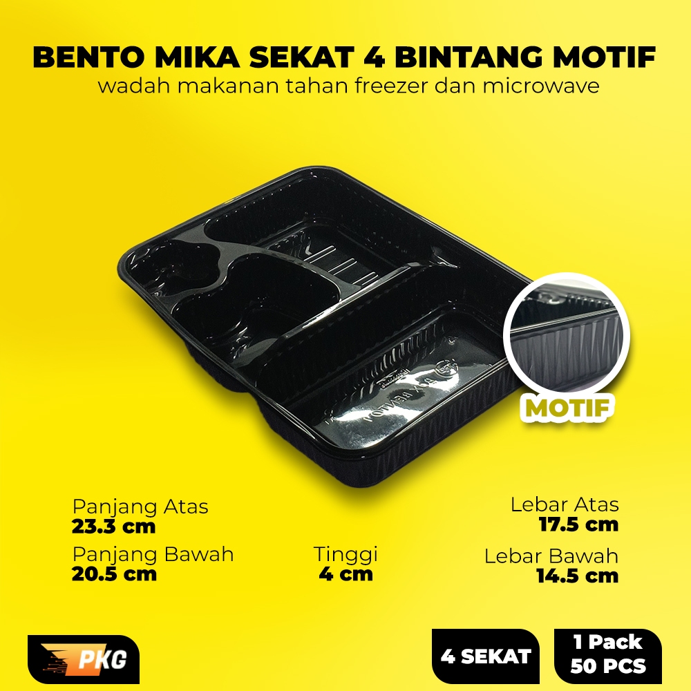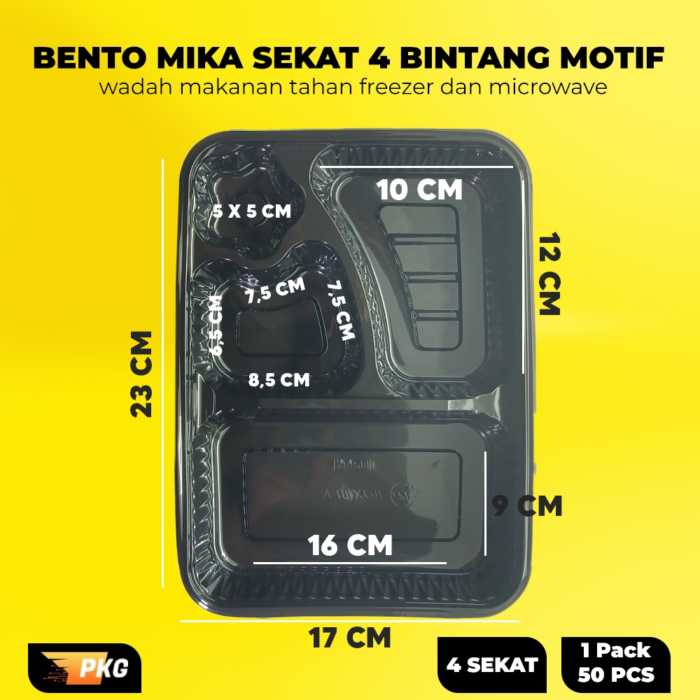 (FLASH SALE)Mika Bento Sekat 4 Bintang + Tutup | Lunch Box Kotak Tray 4 Sekat Motif