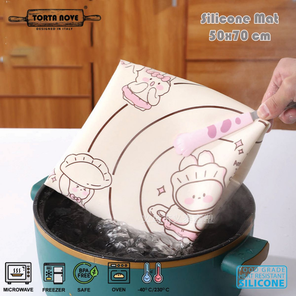 Alas Adonan Silikon 70x50 jumbo Tebal Anti selip Pinggiran TEBAL Kneading dough Silicone mat tepung