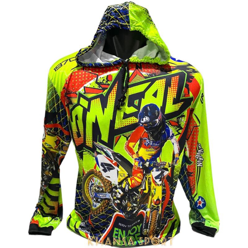 JERSEY MOTOCROSS BAJU TRAIL KAOS BALAP FULL PRINTING LENGAN PANJANG HODDIE/KUPLUK PENUTUP KEPALA DEWASA BAHAN LEMBUT DAN