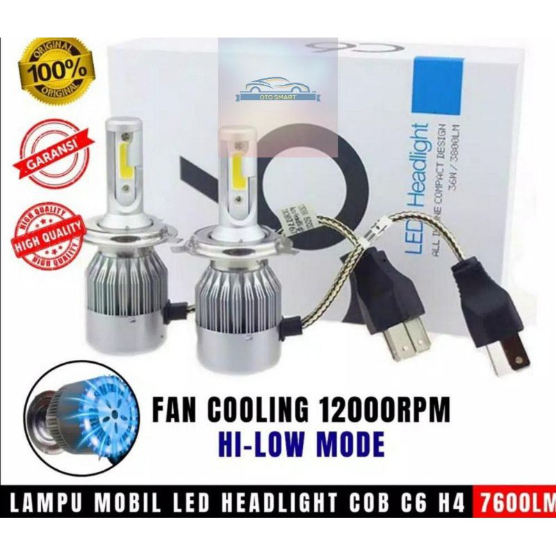 Lampu Mobil LED Headlight C6 H4 COB 2 Pcs Dengan Kipas Pendingin