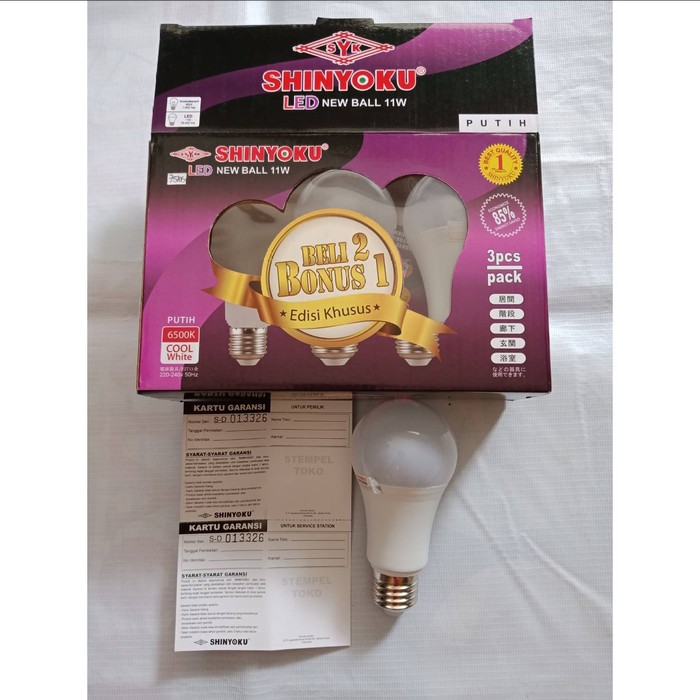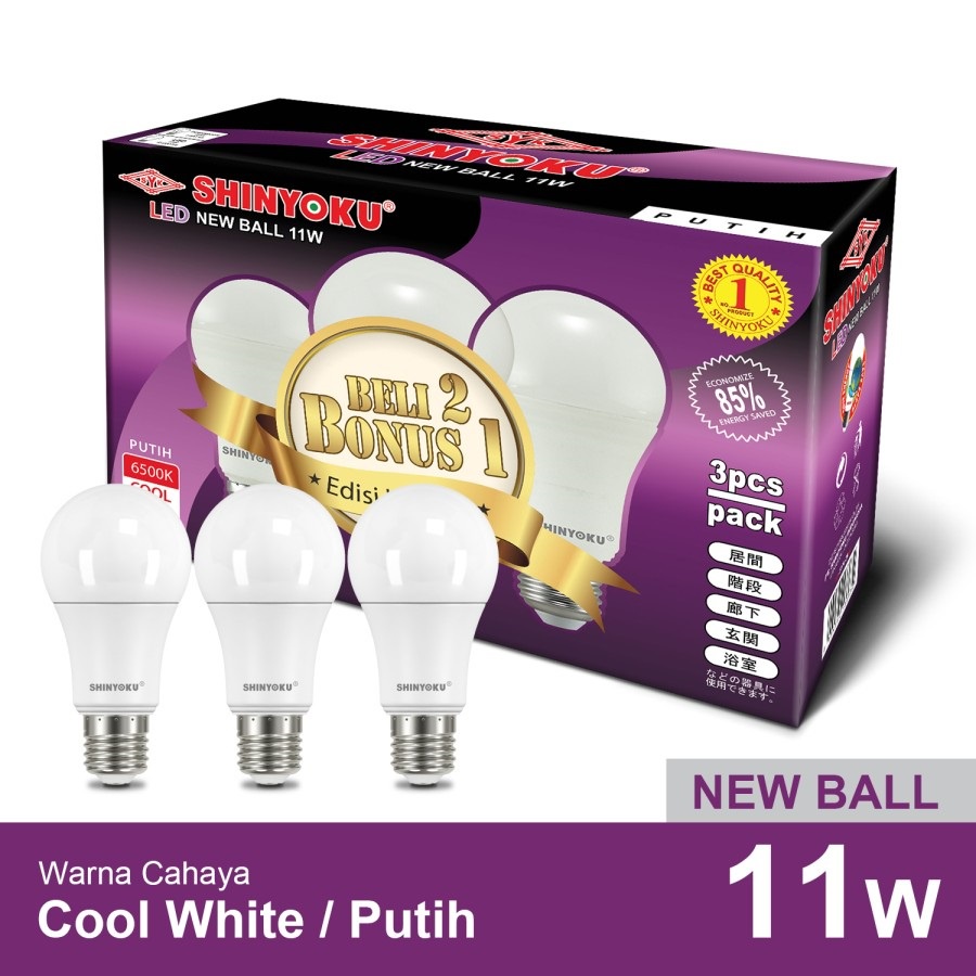 Lampu Led Shinyoku 11 Watt New Ball ( Beli 2 Bonus Gratis 1 )