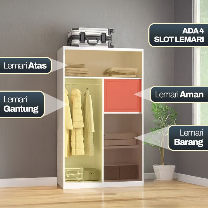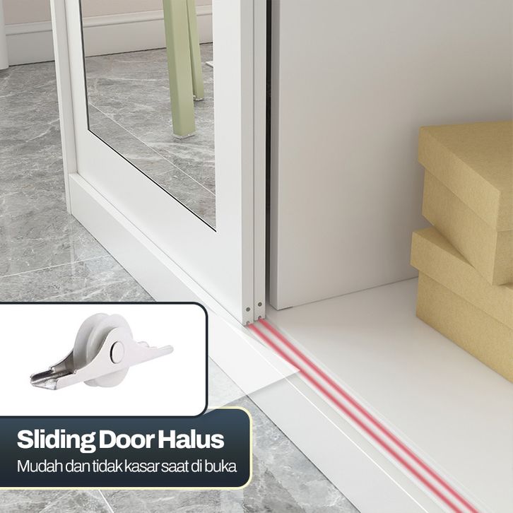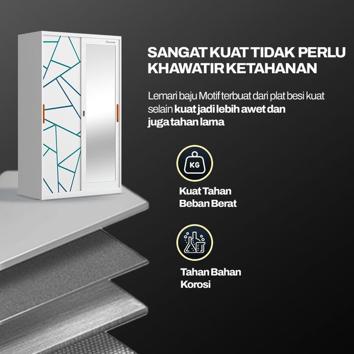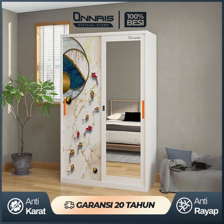 Lemari Pakaian Besi Sliding 2 Pintu Full Motif Lemari Baju Cermin dan Wardrobe Minimalis