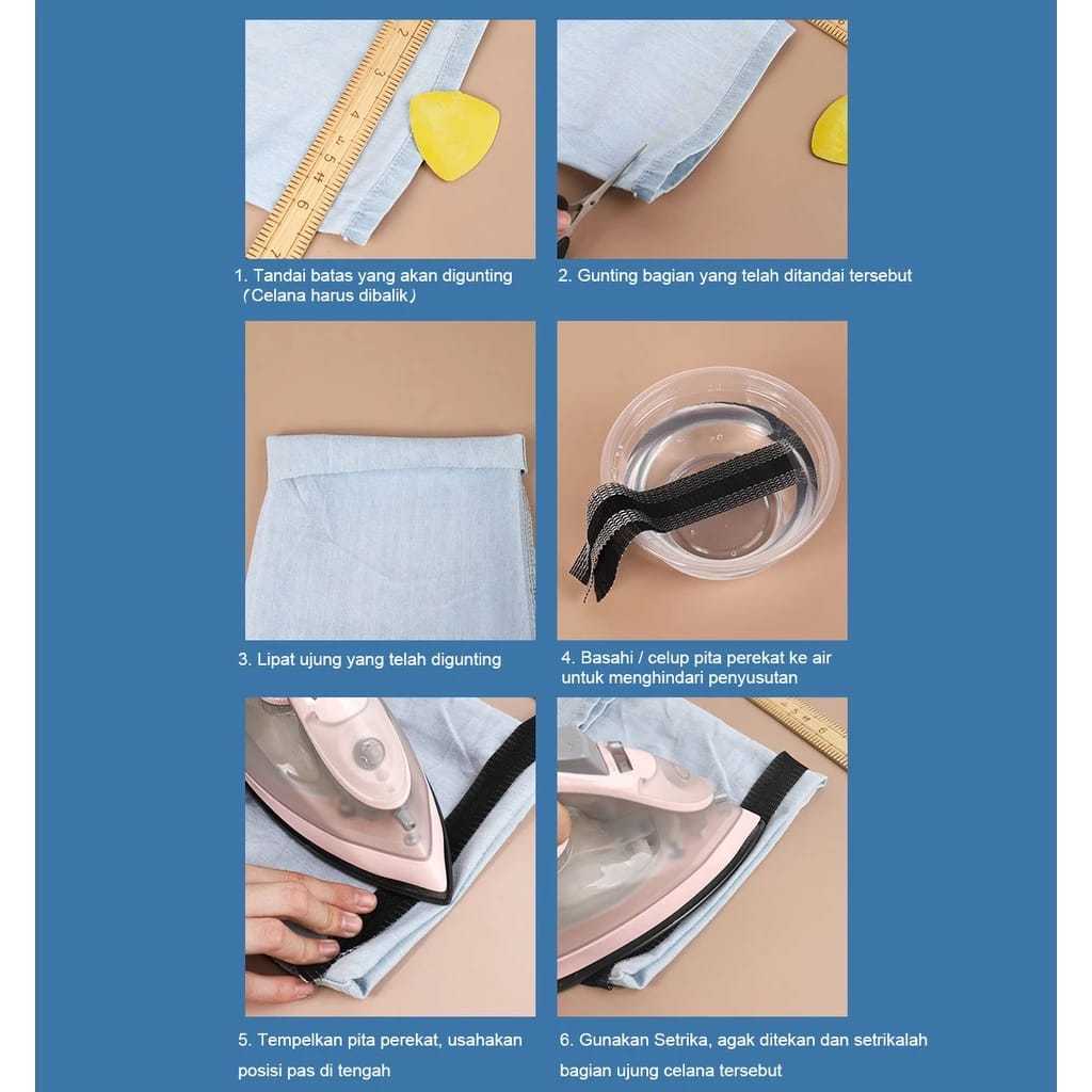 POM LEM JEANS 1M PEMENDEK CELANA JEANS TANPA JAHIT UKURAN 100CM PANT EDGE SHORTEN SELF ADHESIVE PEREKAT CELANA JEAN