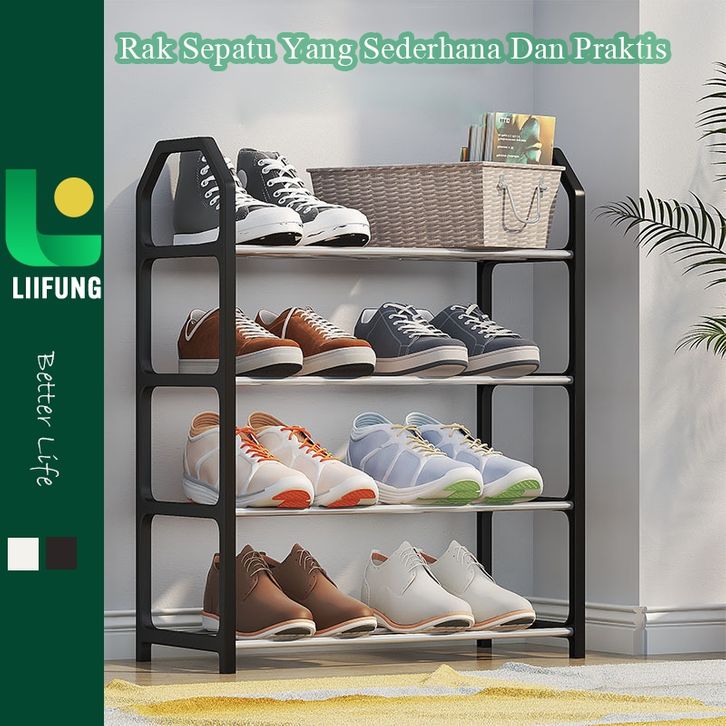 GROSIR Liifung Rak Sepatu 4 Susun Putih Tempat Sepatu Sandal Portable Rak Sandal Serbaguna obomnk