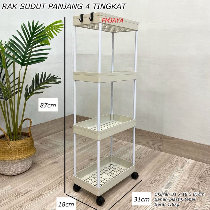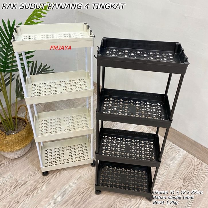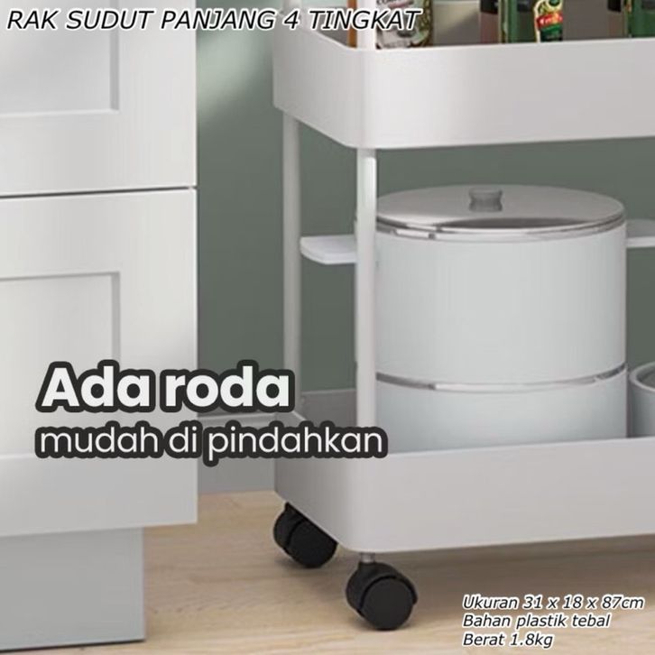 GROSIR RAK SUDUT PANJANG 4 SUSUN || RAK TROLI RODA || RAK SERBAGUNA || RAK 4 SUSUN || RAK DAPUR / RAK SUDUT ||