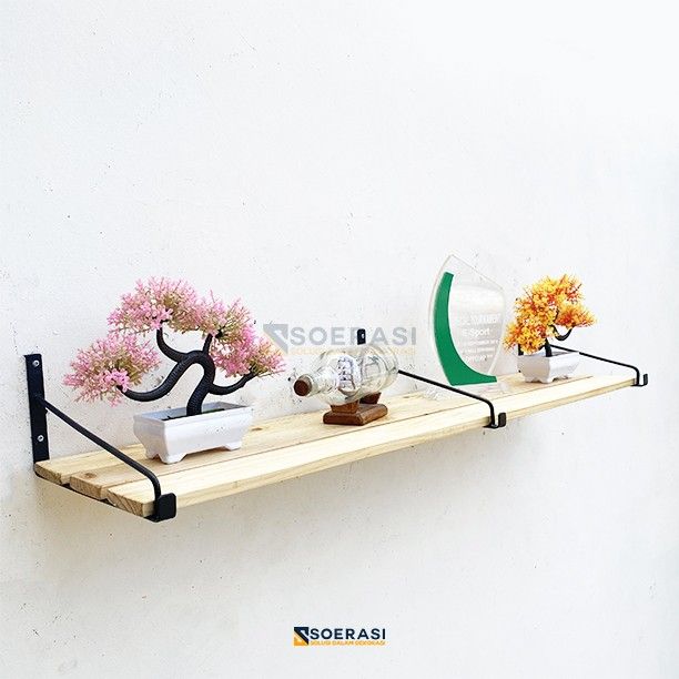 Terlaris LADIN 1 METER rak buku dinding besi dan kayu vintage kuno es sepatu