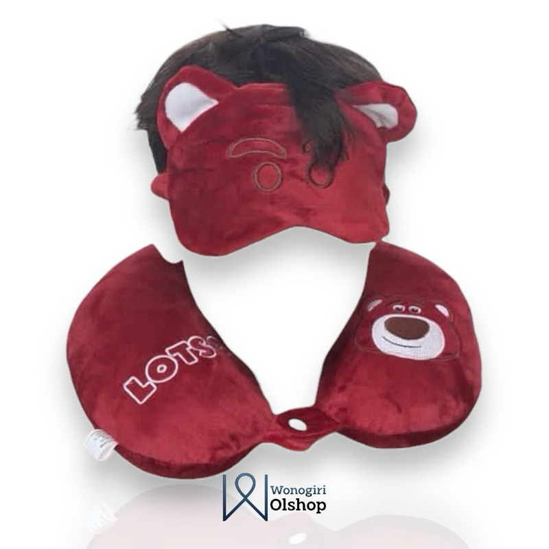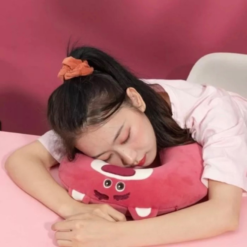 Boneka Bantal Leher Free Penutup Mata Dewasa dan Guling Lotso Karakter Hewan Bantal Leher Karakter Lotso Hewan Lucu