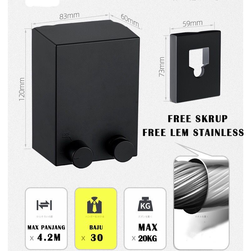 TOPER Jemuran Baju Portable Indoor Outdoor Retractable Tali Clothesline Bahan Stainless