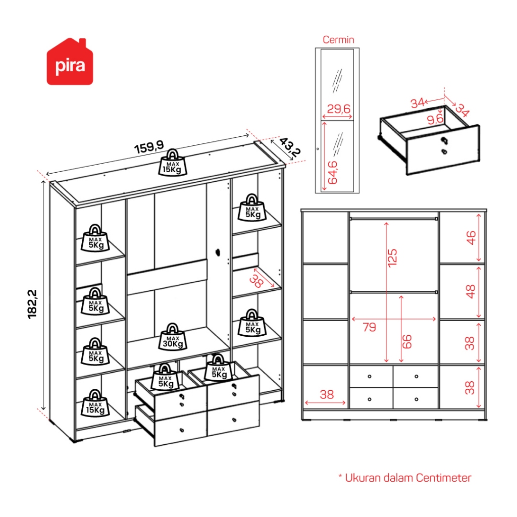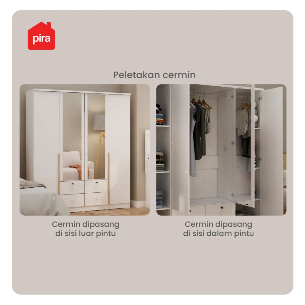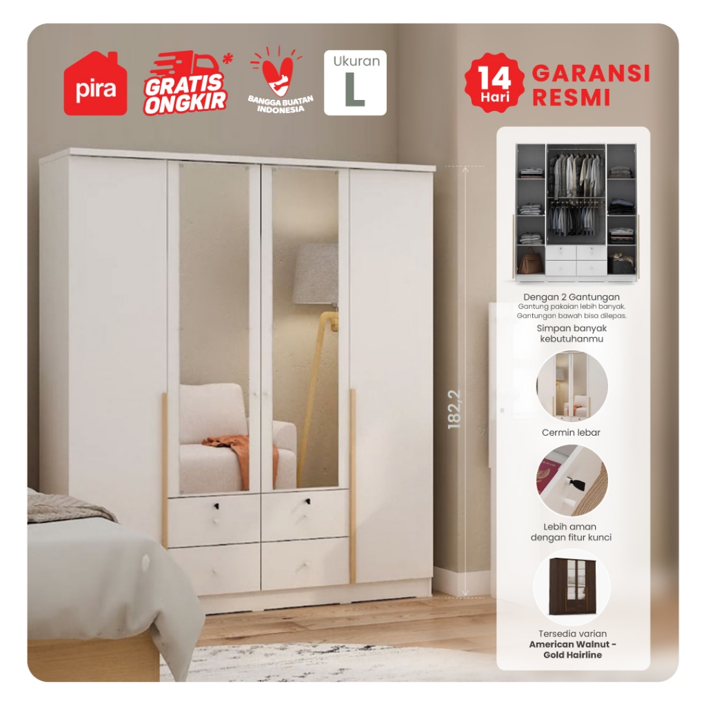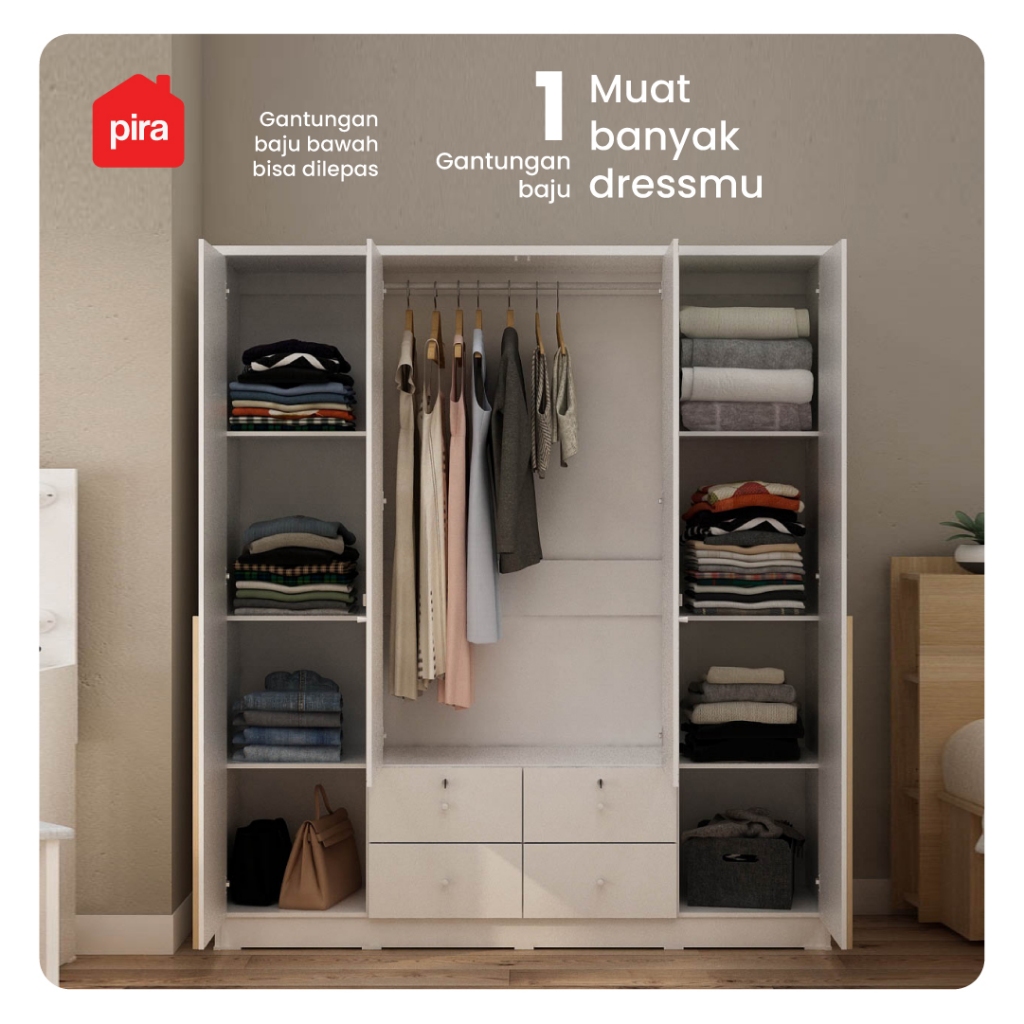 PIRA METROPOLIS - YONA 4P 4DR Lemari Pakaian 4 Pintu dengan 4 Laci