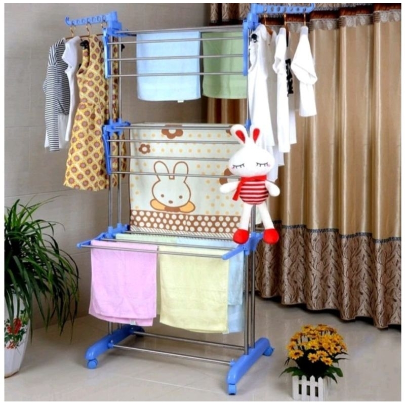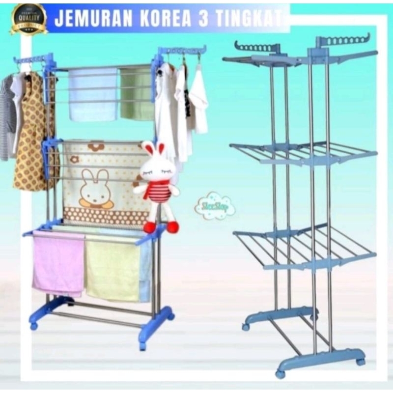 Jemuran Korea Rak Susun 3 Tingkat 3 Susun Jemuran Menara Laundry Baju Bayi Stand Hanger Serbaguna
