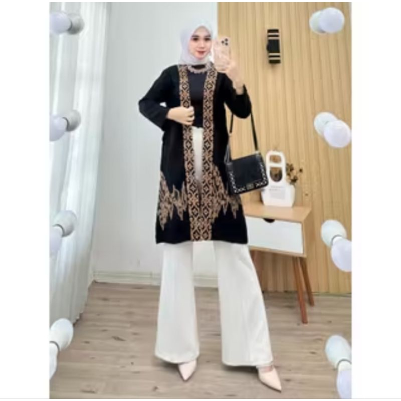 Long Cardigan Tunik Cardigan Batik One set Kondangan Batik Outer Batik Kekinian Modern