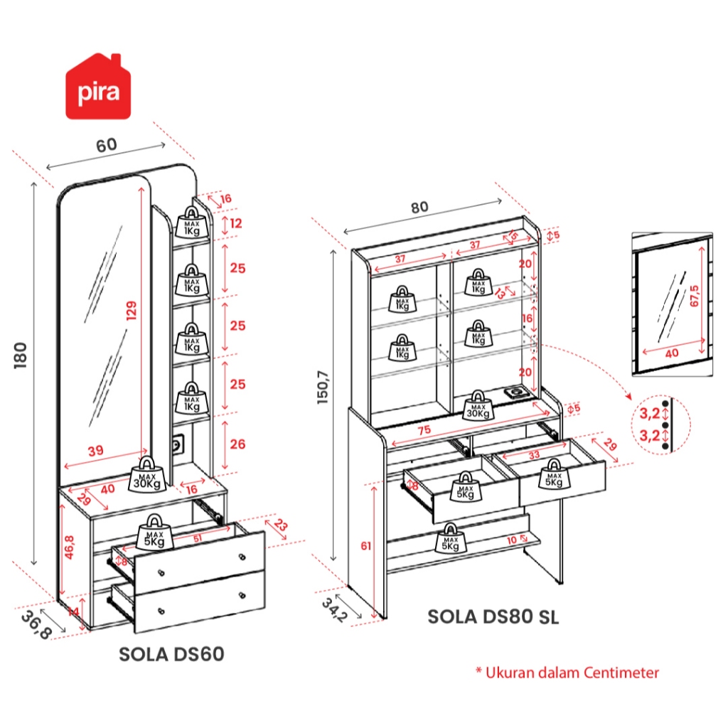 PIRA METROPOLIS - SOLA DS Meja Rias dengan Stop Kontak