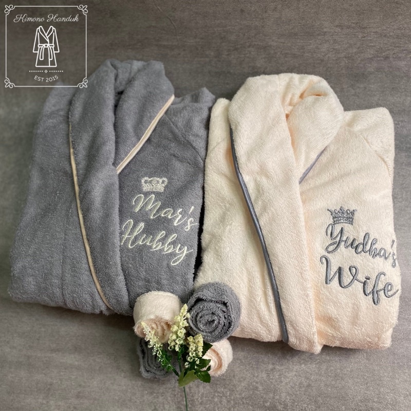 Kimono Handuk Bathrobe Couple +Bordir Depan
