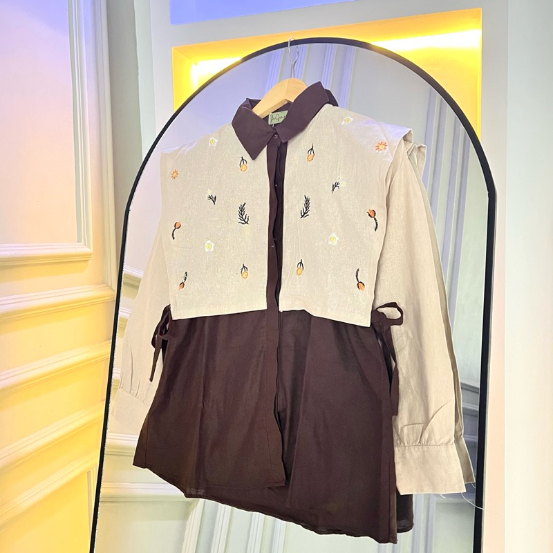 Alika Shirt - Kemeja Bordir Linen Kemeja Vest Ikat Bordir Oversize Wanita