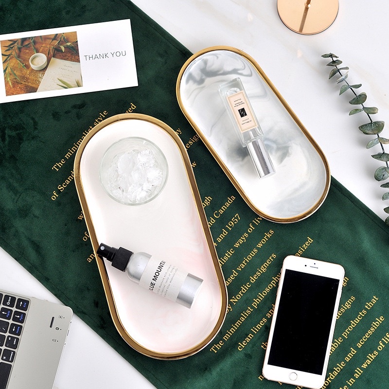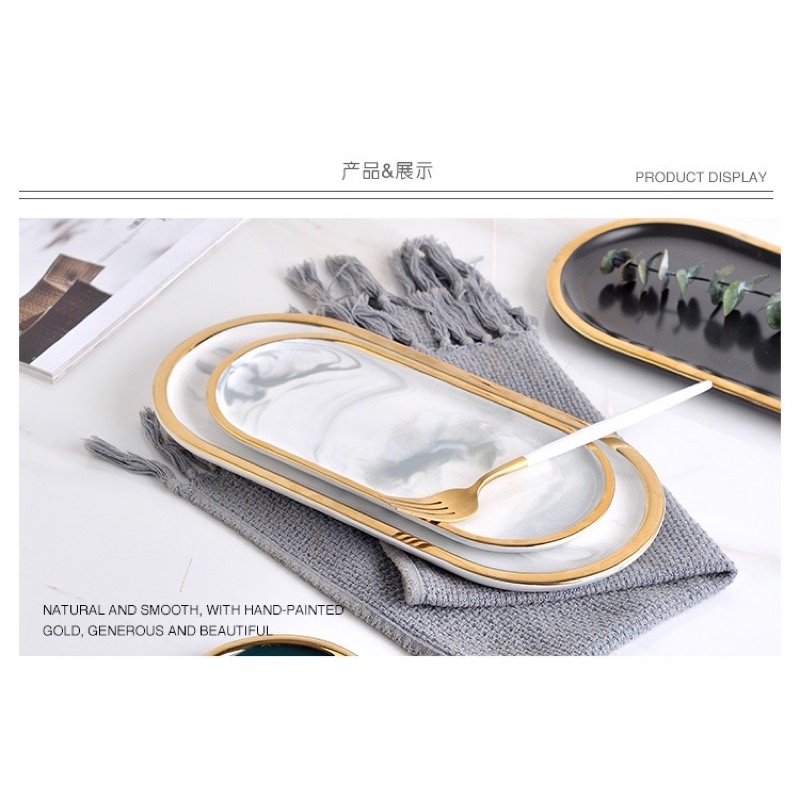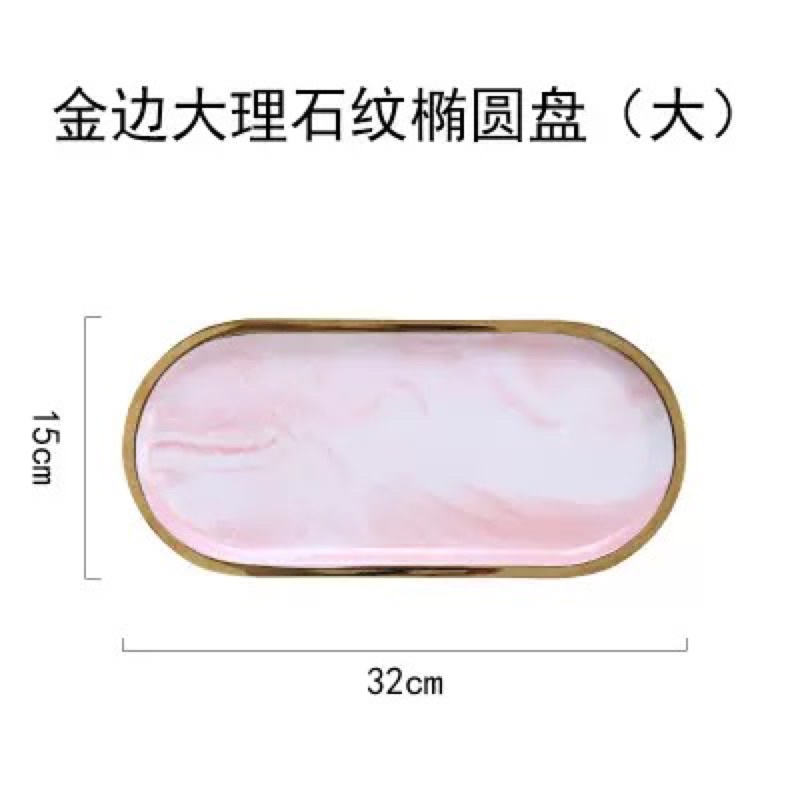 Marble plate oval / Tray / Alas pajangan tatakan NAMPAN MARBLE KERAMIK ESTETIK OVAL MURAH