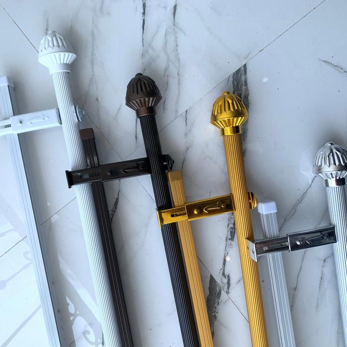 Murah Hersani Batang Besi Gorden Double Full Set Elite Endcup Bunga Mekar Diameter Pipa 25mm - g0oldd Garis 50cm Promo