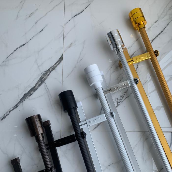 Murah Besi Gorden Double Fullset Batang Hordeng Ganda Hitam Doff Rel Vitrase Alkan Oval - g0oldd Garis Polos 50cm Promo
