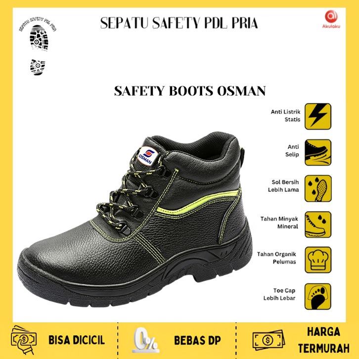 Sepatu Safety Ujung Besi OSMAN SAFETY SHOES Mid Cut Tipe OS-018 Safety Pria Kerja Dewasa Boot Boots Sefty Septy Tali