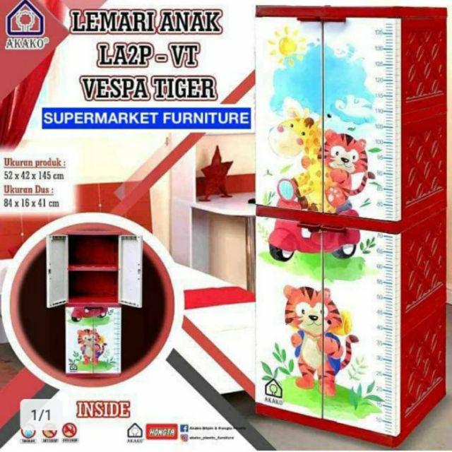 PROMO LEMARI PLASTIK PAKAIAN BABY AKAKO JUMBO LEMARI KARAKTER ANAK KUNCI KACA 4 SUSUN MURAH LA2P BAJU
