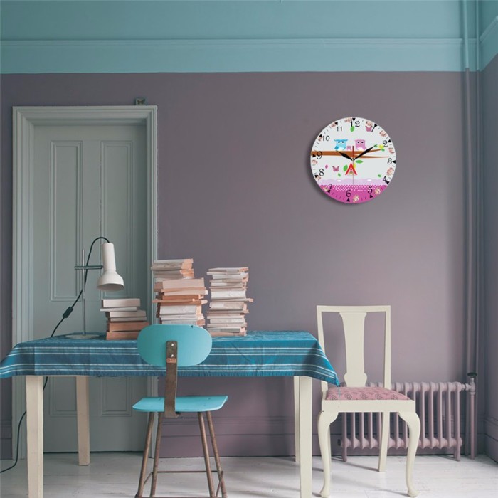 Jam Dinding Unik Desain Burung Hantu/Owl Love Style 30cm Quartz Sweep