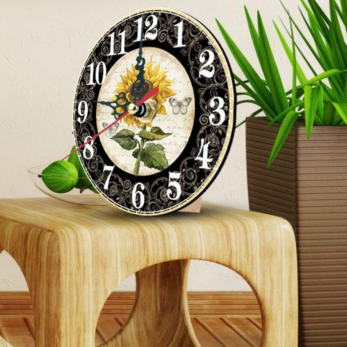 Jam Meja Unik Vintage Retro Sunflower Jam Duduk Sweep Movement