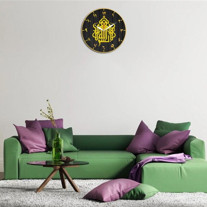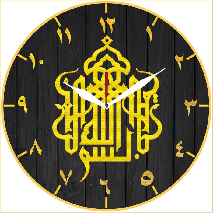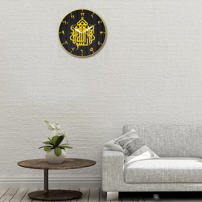 Jam Dinding Nuansa Islami Kaligrafi Arab Bismillah 30cm Quartz Sweep